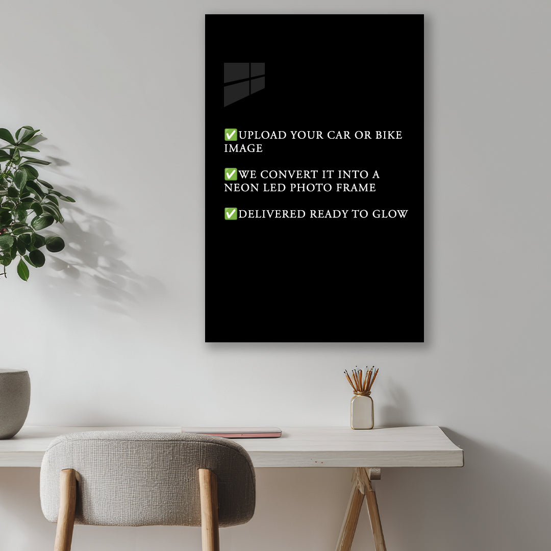 Upload your car or bike photo and let us craft a custom neon LED photo frame that captures its attitude, power, and presence — delivered with care, ready to glow.