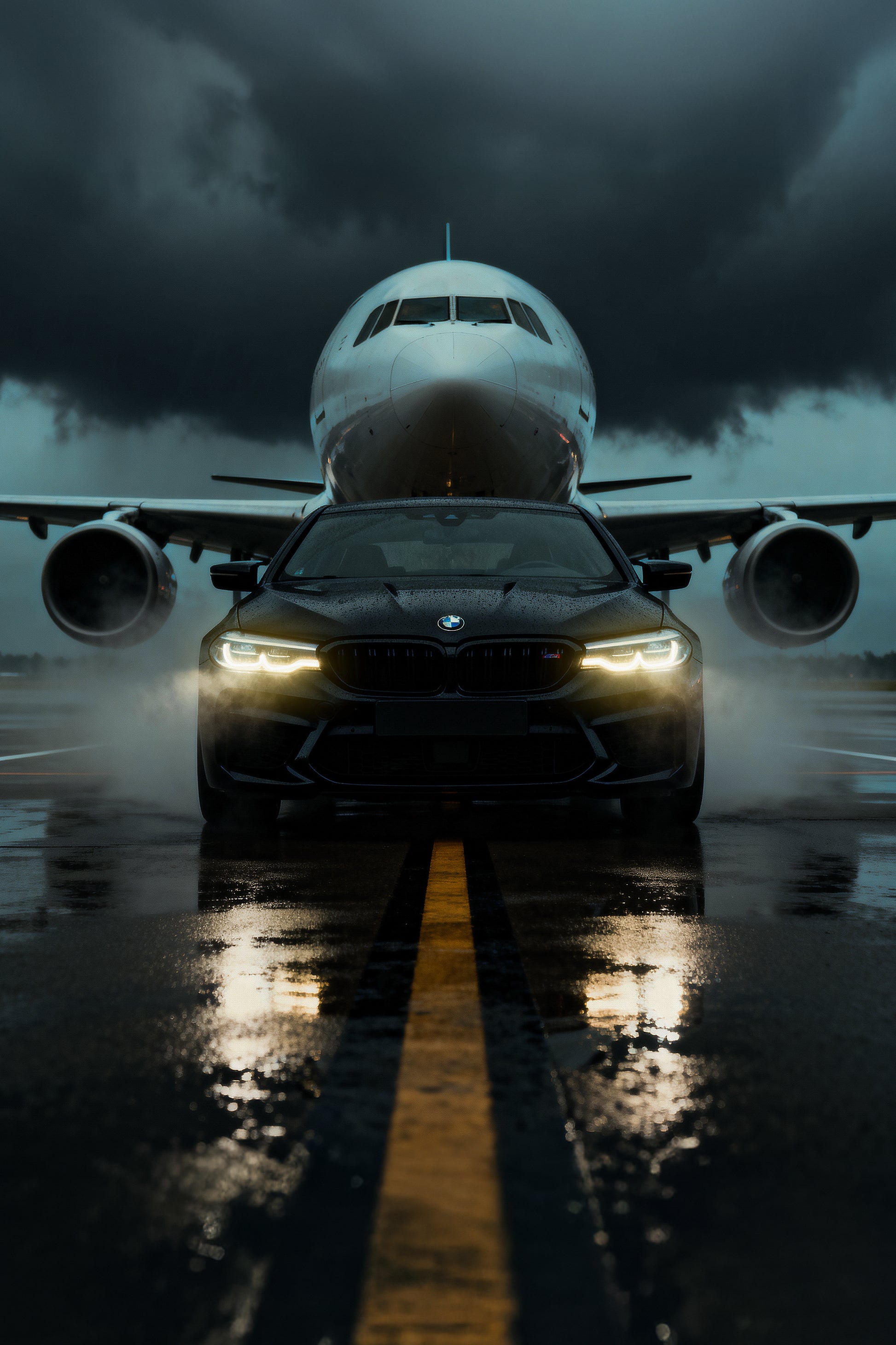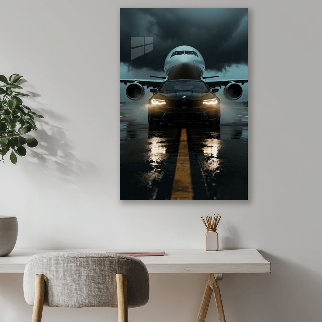 Bring pure adrenaline vibes to your wall! This neon frame captures the ultimate showdown – BMW horsepower vs jet power – drenched in rain, speed, and chaos. Perfect for car lovers, thrill-seekers, or anyone who wants their space to scream lit AF.