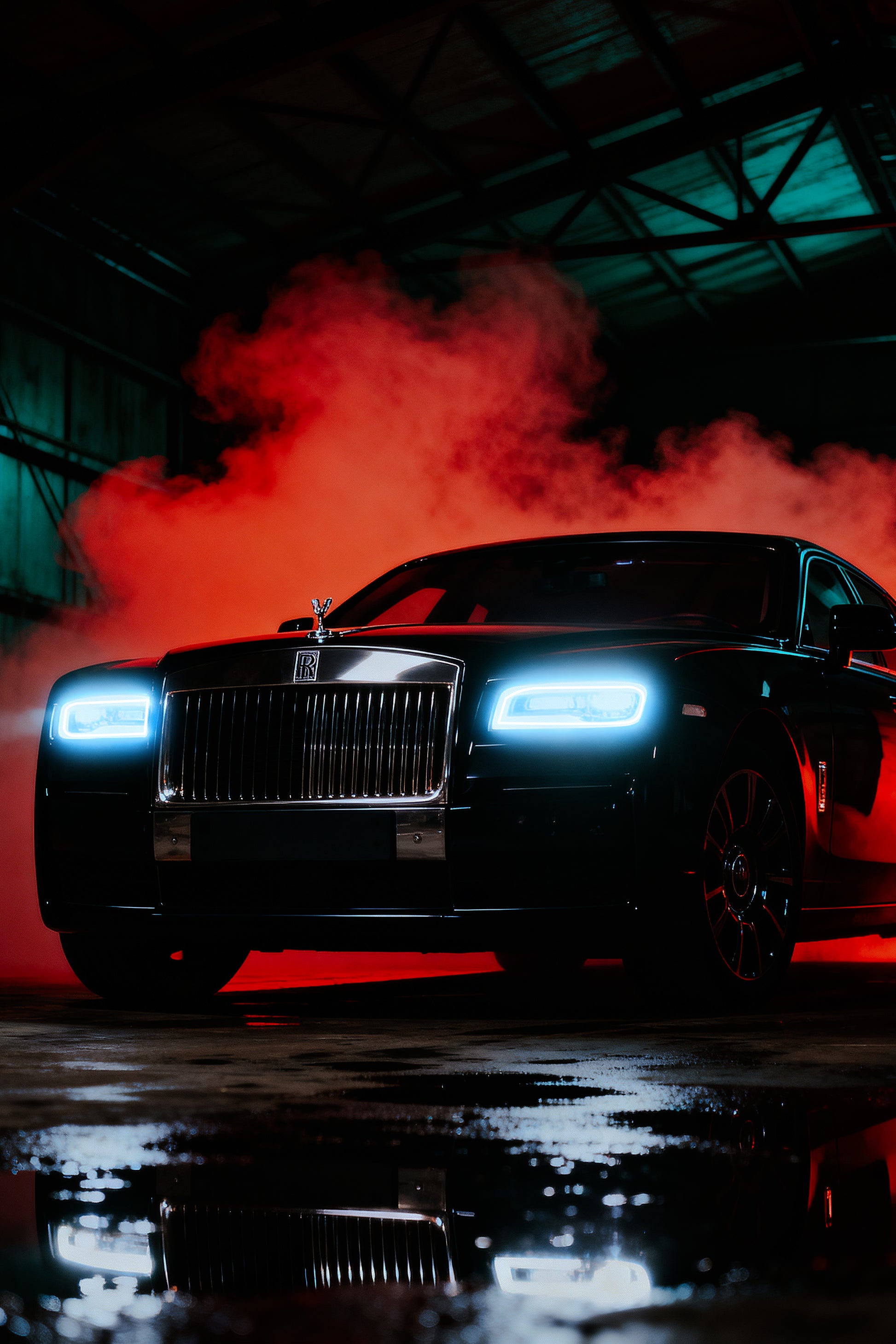 A shadow-black machine cutting through smoke and fire — cold headlights, ruthless presence, zero forgiveness. This frame isn’t about speed alone; it’s about power, status, and intimidation.