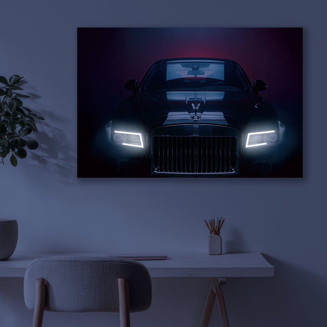 The iconic grille, Spirit of Ecstasy, and refined neon glow create a statement piece for walls that speak class, power, and exclusivity.